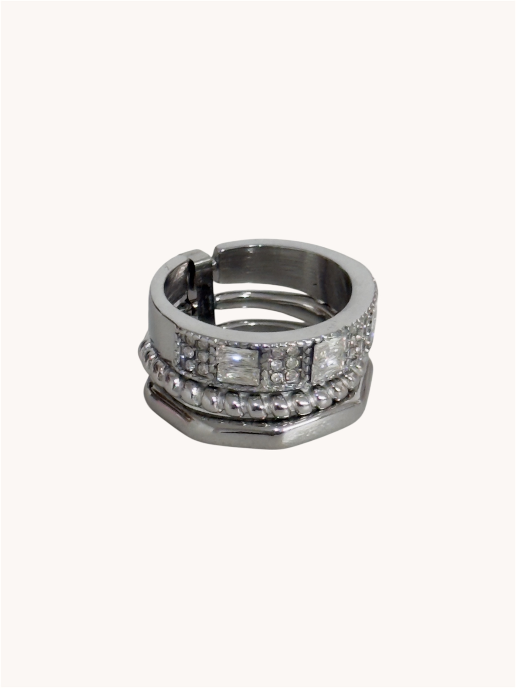 Δαχτυλίδι από ατσάλι σε ασημί χρώμα.