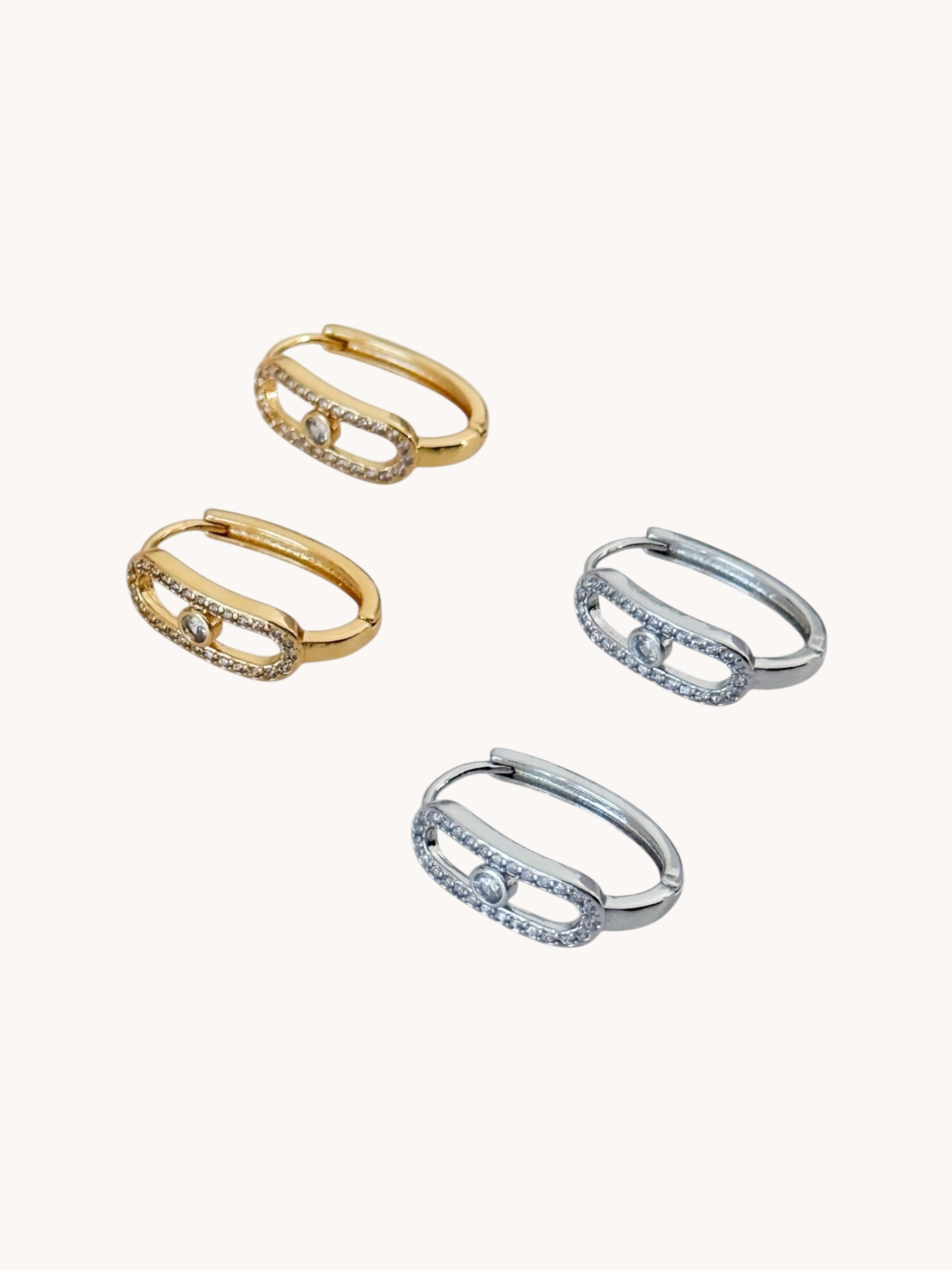 Σκουλαρίκια από ατσάλι σε ασημί ή χρυσό χρώμα με ζιργκόν.