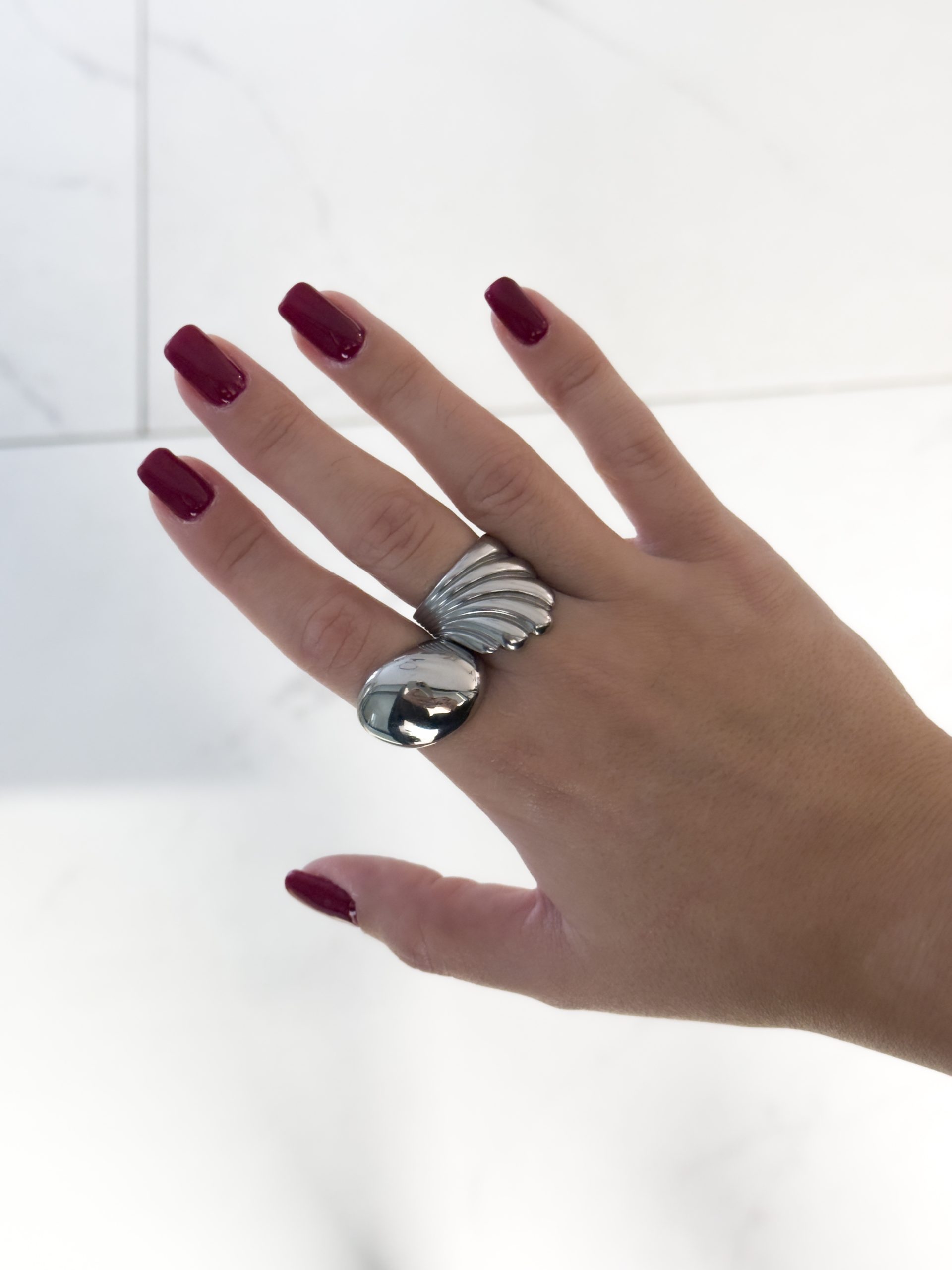 Δαχτυλίδι από ατσάλι σε ασημί χρώμα.