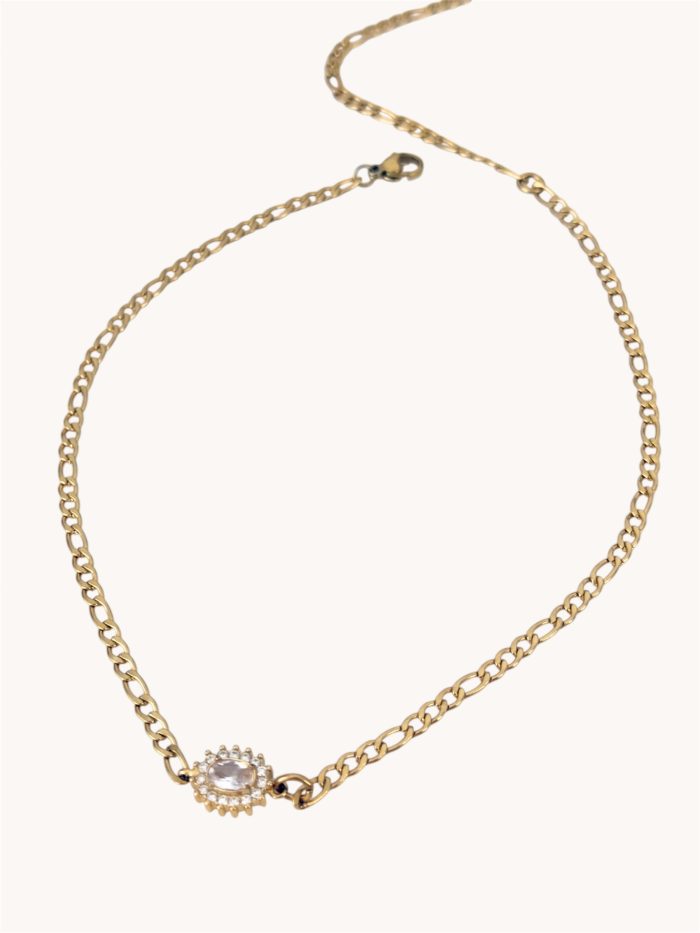 Κολιέ από ατσάλι σε χρυσό χρώμα με ζιργκόν.
