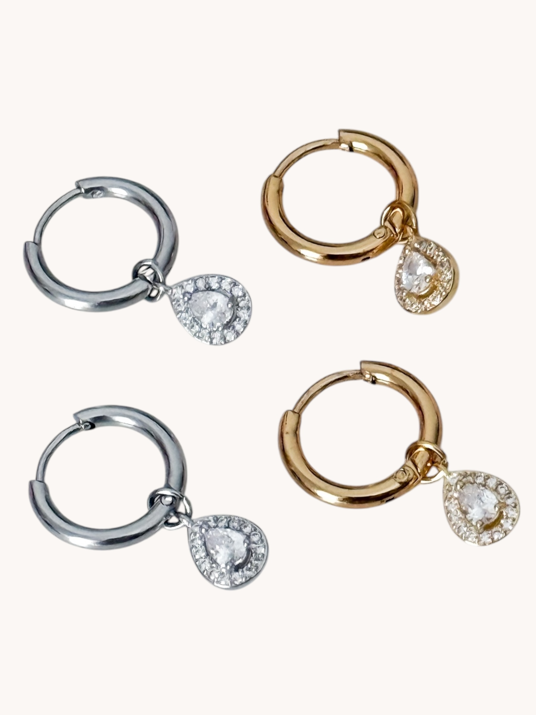 Σκουλαρίκια από ατσάλι σε ασημί ή χρυσό χρώμα με ζιργκόν.